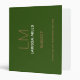 Simple and modern forest-green-binder personalized with lines for initials, name and special subject, in a landscape orientation.