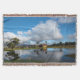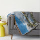 A quality printed throw has its advantages. This is a much finer weave throw than its loopier cousins, and though lighter, it is worth the investment for custom room accessorizing. The back is much prettier than the typical brown, and the fringe on the long sides very vivid, the selvage nicely done. Before photographing, I washed the throw in cold water, delicate, with a thicker woven throw the same size. On tumble dry low, this throw was dry in half the time as the other. This is a very practical quality if you use throws for furniture covers or to wrap up in frequently. The sleekness of the fabric makes it a great layer for accenting or protecting without the feeling of sitting on too much stuff. Perfect for napping or when you feel a light chill coming on. The color printing is beautiful and on this fabric, matched the design and color of my Photoshop image. This is an advantage for blending room fabrics and colors. The fringe on the short sides prints the colors from the design image and therefore varies from the side fringe. I streaked a white fractal line through the plaid pattern to give the illusion of weaving. This printed as crisp as an illusory thread, and put some white in the short side fringe, showing another advantage of print vs loomed- for artistic purposes, line lines, detail, and color integrity can be planned and preserved. My loomed throws have color limitations and more of a needlepoint texture. Print throws reproduce an exact image. The throw felt a little stiff straight out of the package, but this went away in the first delicate wash. Of course I searched the wash water for ink or bleeding and there was none.