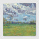 Landscape Under a Stormy Sky. Vincent van Gogh. Cute summer landscape. Storm on the field. Large green floor with red tsetami. There are trees in the background. Clouds are running across the blue sky. Reproduction of famous works of art images in the public domain.