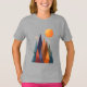 A group of mountains with a sun in the background, vector art, geometric abstract art, vertical wallpaper, green and orange theme, moon light in the top background, earthy colors.