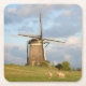 Coaster with a windmill and sheep looking into the camera under beautiful clouds in the sky in a lovely spring landscape in the countryside in the Netherlands.