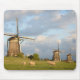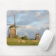 Photo mousepad with three windmills and sheep looking into the camera under beautiful clouds in the sky in a lovely spring landscape in the countryside in the Netherlands.