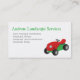 A business card with a red mowing tractor for those in the landscaping services like lawn mowing, maintenance, weeding, fertilizer, pest control, landscape care, landscape design and gardening services. Personalise easily with your business details.