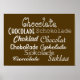 Hey, you've got chocolate on your poster! Actually, with this Languages of Chocolate poster, you'll have chocolate in English, Portuguese, Spanish, Romanian, Dutch, German, Swedish, French, Danish, Polish, Norwegian, Italian and Finnish on your poster! This chocolate brown poster features white writing in a variety of fonts that read, "Chocolate Chocolade Schokolade Choklad Chocolat Chokolade Czekolada Sjokolade Cioccolato Suklaa." Mmmm... Chocolate.