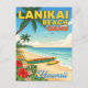 Escape to paradise with this vibrant Lanikai Beach postcard. Featuring outrigger canoes, palm trees, and turquoise waves, this tropical illustration captures the serene beauty of Oahu’s most iconic beach.