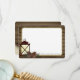 Rustic barn wood, lantern and pine cone design flat card thank you card. Charming front and back design with text that can be changed or add text as preferred.