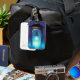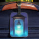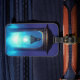 This luggage tag has a lantern on it.