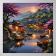 The tranquil waters of a scenic canal reflect the vibrant lanterns of traditional homes in this charming village, surrounded by lush greenery and blooming flowers.