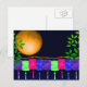Colorful Chinese lanterns and a bright yellow full moon with some foliage on the sides.