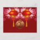 Two traditional lanterns with peach blossoms + golden rabbit paper-cut (image printed). Design on horizontal holiday postcard with date and text to customize. You can easily change text (font, color, size and position) by clicking the customize button. Perfect for Chinese New Year of the Rabbit 2023.