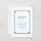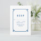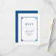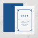 Simple and minimalist Deco Chic Wedding RSVP Card with a modern dark blue art deco ornamental border. This classic and elegant response card is easy to customize with your wedding details. Find more personalization options by clicking Customize.