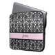 Laptop case with fun and modern light pastel blush pink, black and white floral damask vintage pattern. Personalize this case with your own name or other custom text to create a truly unique case. Contact us to request a color change.
