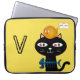 Laptop Sleeve Black Cat Fish Bones Yellow