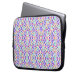 Laptop sleeve with colorful abstract floral pattern in purple, pink, blue, and green. Black zipper and edges create a bold contrast.