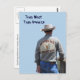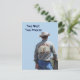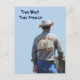 This postcard features the backside of a cowboy wearing a vintage Laramie shirt. Placed on a light sky blue background, it makes a stunning photograph. The customizable text on the front says "True West True America", and the back of this card tell a bit about the old Wild West town of Laramie.