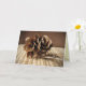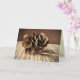 This elegant birthday card features a very simple still life composition of a single golden brown larch cone still attached to its branch on a straw mat against a chocolate brown background. The exquisite detail of this very small cone resembles a wooden rose. A small cone decorates the inside. The text can be customized to suit your needs.