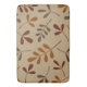 An illustrative surface pattern design of assorted leaf silhouettes in colors of the fall (autumn).