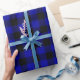 A wrapping paper designed with a black and blue buffalo plaid pattern in large size. You can change the blue for a different color in an easy way.