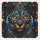 Large Black Cat Mosaic stained Glass effect Square Sticker