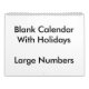 Stay organized in style with our Large Blank Calendar with Holidays and large numbers! Easy to read and perfect for home, office, or classroom use. Plan events, mark dates, and keep track of your year with a clean, modern, and practical design.