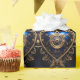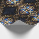 large blue and gold steampunk hearts pattern wrapping paper