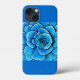 Phone case in a giant, beautiful camellia flower in shades of cobalt blue and turquoise, accented with dark indigo and white