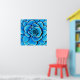 Print in a giant, beautiful camellia flower in shades of cobalt blue and turquoise, accented with dark indigo and white