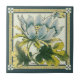 This blue flower design is from a Victorian transferware tile from the late nineteenth century. Colors of soft blues and a range of greens from almost chartreuse to hunter give this tile timeless appeal.
