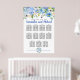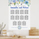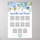 Beautiful blue hydrangeas create an elegant watercolor border at the top of this large 11-Table seating chart. A dash of purple hydrangeas give it depth and creamy white flowers keep it light and airy. Green, leaves and dangling vine, give it just a touch of Boho style. The wedding couple names are written in a bright blue trending script font. The wedding date is featured in a blue hydrangea wreath at the bottom. This blue floral seating chart is part of the Blue Hydrangea collection that contains signs, programs, menus, place cards and table decor that let you easily and affordably personalize your wedding ceremony and reception. You should see a link to it on this page. If you can' t find the link or need help with an item, please contact me.