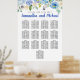 Beautiful blue hydrangeas create an elegant watercolor border at the top of this large 13-Table seating chart. A dash of purple hydrangeas give it depth and creamy white flowers keep it light and airy. Green, leaves and dangling vine, give it just a touch of Boho style. The wedding couple names are written in a bright blue trending script font. This blue floral seating chart is part of the Blue Hydrangea collection that contains signs, programs, menus, place cards and table decor that let you easily and affordably personalize your wedding ceremony and reception. You should see a link to it on this page. If you can' t find the link or need help with an item, please contact me.