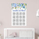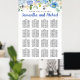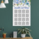 Beautiful blue hydrangeas create an elegant watercolor border at the top of this large 16-Table seating chart. A dash of purple hydrangeas give it depth and creamy white flowers keep it light and airy. Green, leaves and dangling vine, give it just a touch of Boho style. The wedding couple names are written in a bright blue trending script font. This blue floral seating chart is part of the Blue Hydrangea collection that contains signs, programs, menus, place cards and table decor that let you easily and affordably personalize your wedding ceremony and reception. You should see a link to it on this page. If you can' t find the link or need help with an item, please contact me.