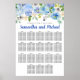 Beautiful blue hydrangeas create an elegant watercolor border at the top of this large 18-Table seating chart. A dash of purple hydrangeas give it depth and creamy white flowers keep it light and airy. Green, leaves and dangling vine, give it just a touch of Boho style. The wedding couple names are written in a bright blue trending script font. This blue floral seating chart is part of the Blue Hydrangea collection that contains signs, programs, menus, place cards and table decor that let you easily and affordably personalize your wedding ceremony and reception. You should see a link to it on this page. If you can' t find the link or need help with an item, please contact me.