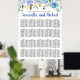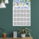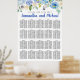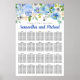 Beautiful blue hydrangeas create an elegant watercolor border at the top of this large 20-Table seating chart. A dash of purple hydrangeas give it depth and creamy white flowers keep it light and airy. Green, leaves and dangling vine, give it just a touch of Boho style. The wedding couple names are written in a bright blue trending script font. This blue floral seating chart is part of the Blue Hydrangea collection that contains signs, programs, menus, place cards and table decor that let you easily and affordably personalize your wedding ceremony and reception. You should see a link to it on this page. If you can' t find the link or need help with an item, please contact me.