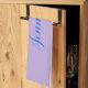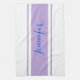 Large Blue Script Name, Lavender Stripes on White Kitchen Towel
