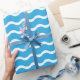 A wrapping paper designed with a blue wave pattern in large size. Customize the white background color among several options.