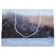 Designer landscape winter-scene in soft and delicate greys, a hint of blue. Unisex design for any special occasion. Personalize the text for Christmas gift giving, or text is removable.