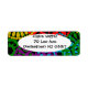 These return address labels have a Black History design of large circles formed from raindrop shapes and circles in red, yellow, purple, green, and turquoise.