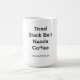 Large coffee mug with "Tired Black Belt Needs Coffee" logo.