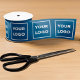 Create your own branded packaging for your business featuring your company logo in a repeating pattern on a blue background. Replace the sample logo with your own in the sidebar. Your logo can be circular, square, or another shape and white or in color. To change the blue background color, "click to customize further," select the background and choose your color in the sidebar. Then click "done" to purchase your customized item.