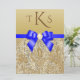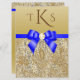 Large Faux Gold Sequins Royal Blue Bow Wedding Invitation