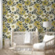 Large Floral Green White and Gray Wallpaper