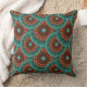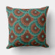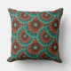 Large Flowery Teal Brown Orange Pattern Throw Pillow