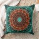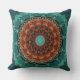 Large Flowery Teal Brown Orange Patterned Throw Pillow