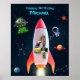 Large Four with Photos | Rocket Space 4th Birthday Poster