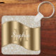 Large Gold Monogram, White Script Name, Diamonds Keychain