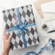 A wrapping paper designed with a gray tones argyle pattern in large size.