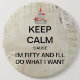 Our Large Keep Calm Fiftieth Birthday Button is a fun and quirky gift idea for friends turning 50. Available in a variety of sizes. Parody design features birthday cake motif joined with distressed grunge background pattern. Take advantage of the available volume discount and purchase a smaller size as fiftieth birthday party favors.