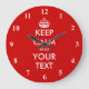 Large Keep Calm wall clock | Customizable vintage design. Create your own funny keep calm and carry on parody. Background colors can be changed too. Some of the best examples: Keep calm and party on. Keep calm and love me. Keep calm and drink tea.