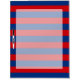 A modern vibrant red and blue horizontal stripes print background for a fine custom gift.