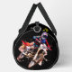 I actually had been searching other sites for a duffle gym bag and I couldn't find any. This one is just what I was looking for with all the features. The inside zip pocket, the outside mesh pocket and LOTS of room inside. Love the printing. Really like how the floral print turned out.